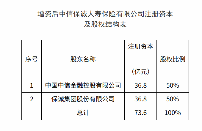 中信保诚人寿保险增资事项获监管部门批复,注册资本增至73.6亿元