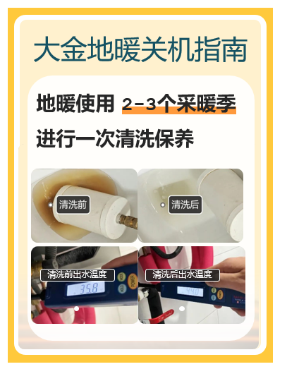 大金官方建议,地暖使用2-3个采暖季*2进行一次清洗保养。