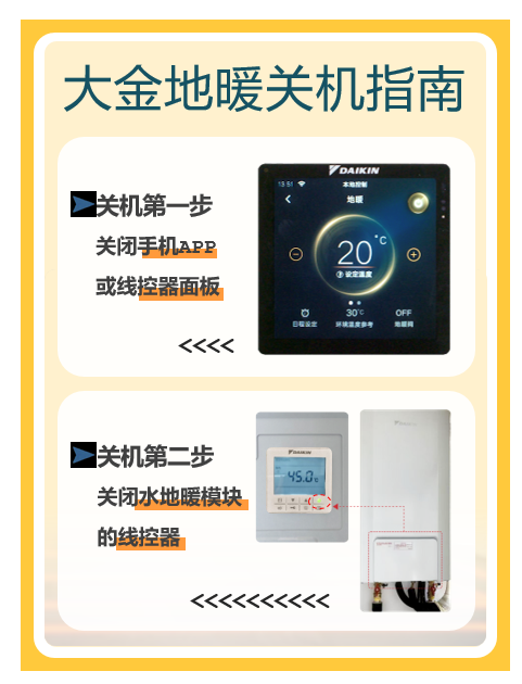 大金官方提醒,地暖关机需完成两步操作: