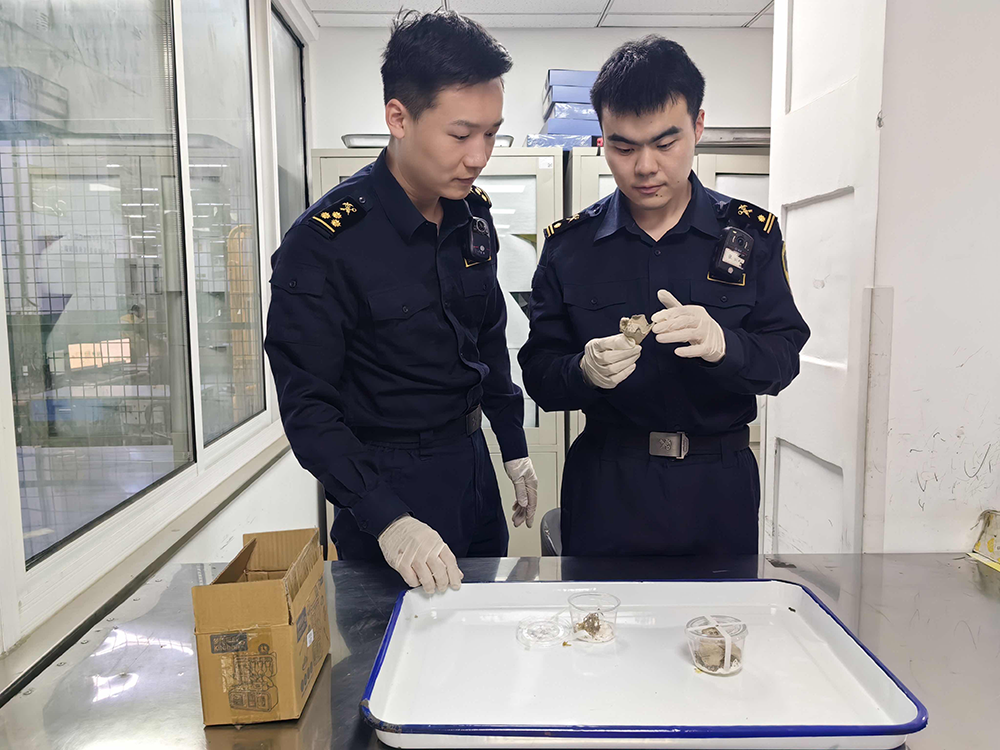4月14日,上海邮局海关在进境邮件中查获疑似活体鼠妇。杨璐 摄