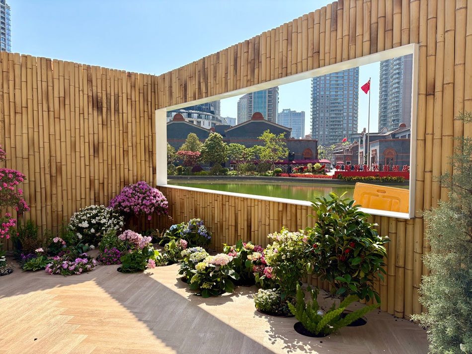 花展设有八大展示板块,其中“世界花园板块”位于黄浦新天地太平桥绿地区域,邀请美国、法国、德国、日本、新加坡等国际设计师参展,5组花园设计通过对自然回归城市、生态与生活相融、城市生物多样性保护等话题的审视和思考,打造出沉浸式的绿色低碳可持续花园。