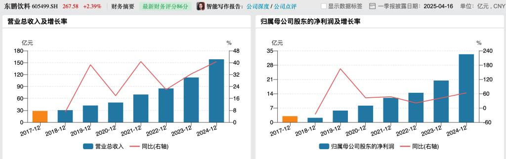 过往东鹏饮料一季度业绩