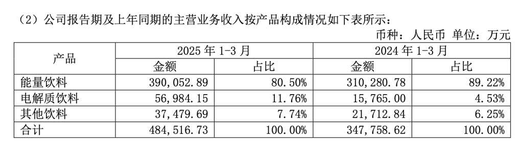 东鹏饮料一季度净利增近五成,电解质饮料收入增超两倍