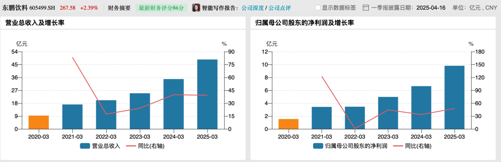 东鹏饮料一季度业绩继续大涨。