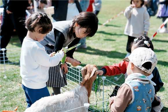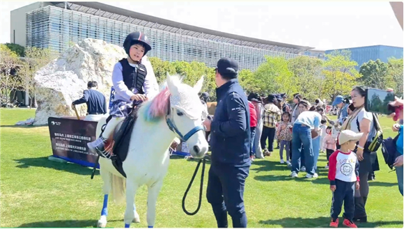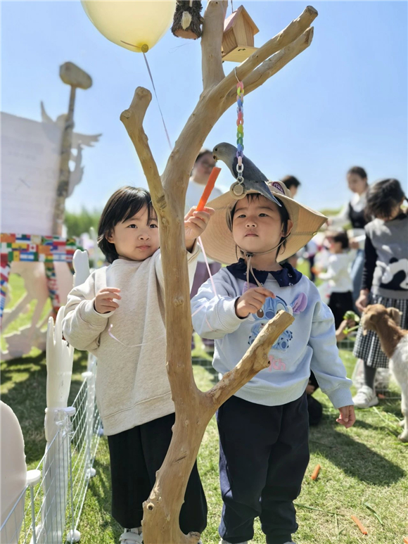 当第一缕春光吻醒草地,三十多个温顺可爱的萌宠早已在此等候小朋友了——三匹骏马儿踏着碎金般的阳光,精湛马术表演获得满场喝彩;垂耳兔蜷成糯米团子;狗狗们晃着睫毛轻嗅花香;指尖鹦鹉和珍珠鸟清脆的鸣叫声谱成一曲大自然的童谣;托三班小漂亮妈妈带来了农场动物:鸡、鸭和小羊等都伸长脖子等候小朋友的喂食;龙猫、金丝熊、银渐层猫咪、雨林萌蛙、小蜗牛、彩虹锹甲、睫角守宫、春日小蝌蚪……吸引了大小朋友喂食围观。