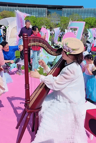 草坪中央的舞台美轮美奂——小班萌娃踮起脚尖,且让裙摆与音符共舞,教师乐队琴声悠扬婉转,指尖触碰阳光的弧度,风成了流动的指挥家,将童声、弦乐与管鸣酿成春日特调。