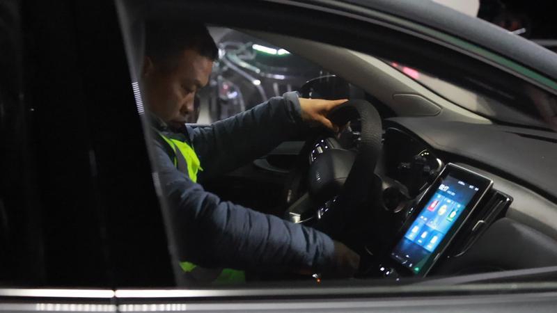 “嘟嘟!”按响手中的钥匙,远处一辆白色新能源车应声闪灯,王杰找到车,熟练地拔枪、关闭充电盖,把车开到后方的停车场,再回来找下一辆车……“就这样转啊转,每天晚上要挪几十辆车,差不多要走两万步。”王杰说,“半夜12点到凌晨2点,是我们最忙碌的时候,因为这个时段回来的车特别多。”