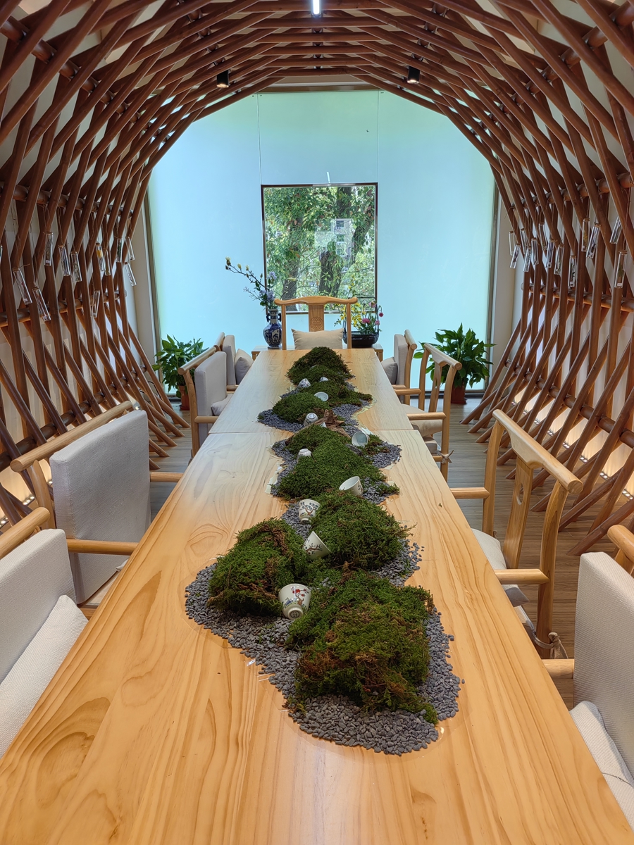 2024年,摆渡人书场迎来了一次彻底的改造。设计师保留了原有建筑的面积和外观,却通过巧妙的内部设计,扩展了两个新教室,让这个空间焕发新生。二层原本荒废的空间被重新利用,通过一座“悬竹”楼梯与庭院相连,形成了一个既实用又美观的公共艺术装置。“梅园吐竹”的设计灵感,将江南“小桥流水”的意境融入现代社区,让居民在品茶观景的同时,感受传统文化的诗意。