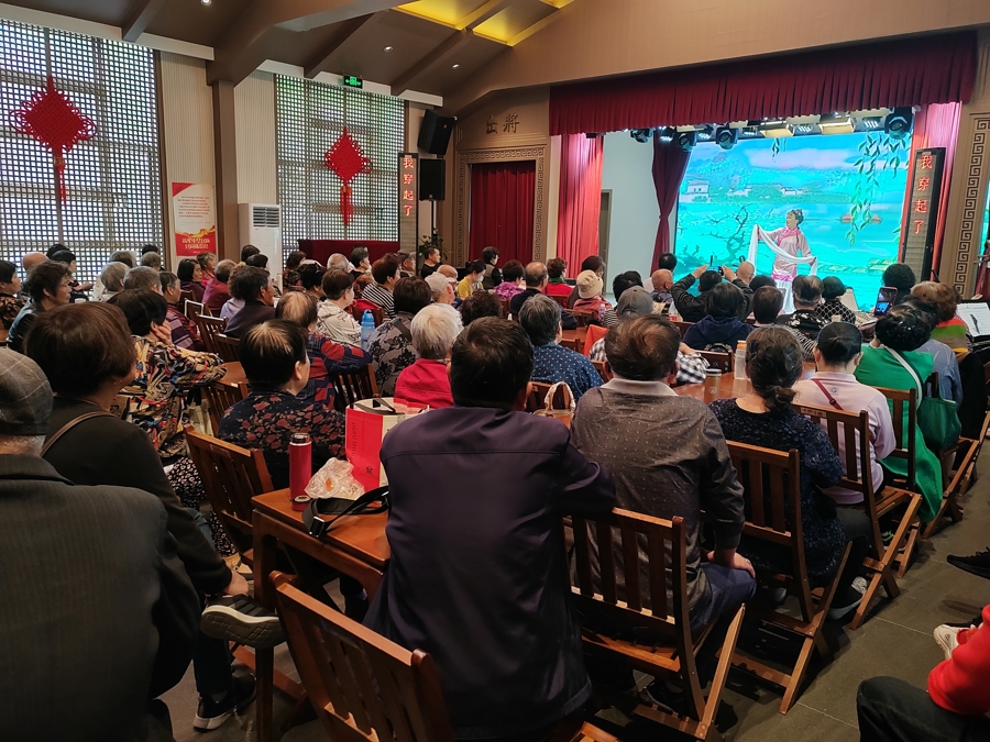 70岁的蒋阿姨是书场的“铁杆粉丝”,每周都会从康桥赶来听沪剧。“我9点就到了,想占个好位置。”蒋阿姨笑着说,“这里的沪剧特别有味道,演员们都很专业。”