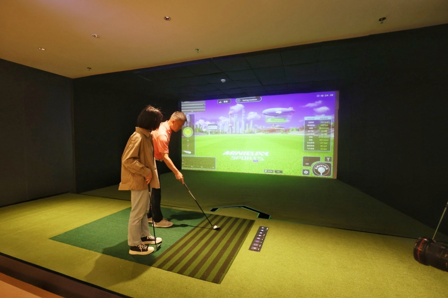 雅诗阁服务公寓影音室内配有高尔夫模拟室。叶辰亮摄
