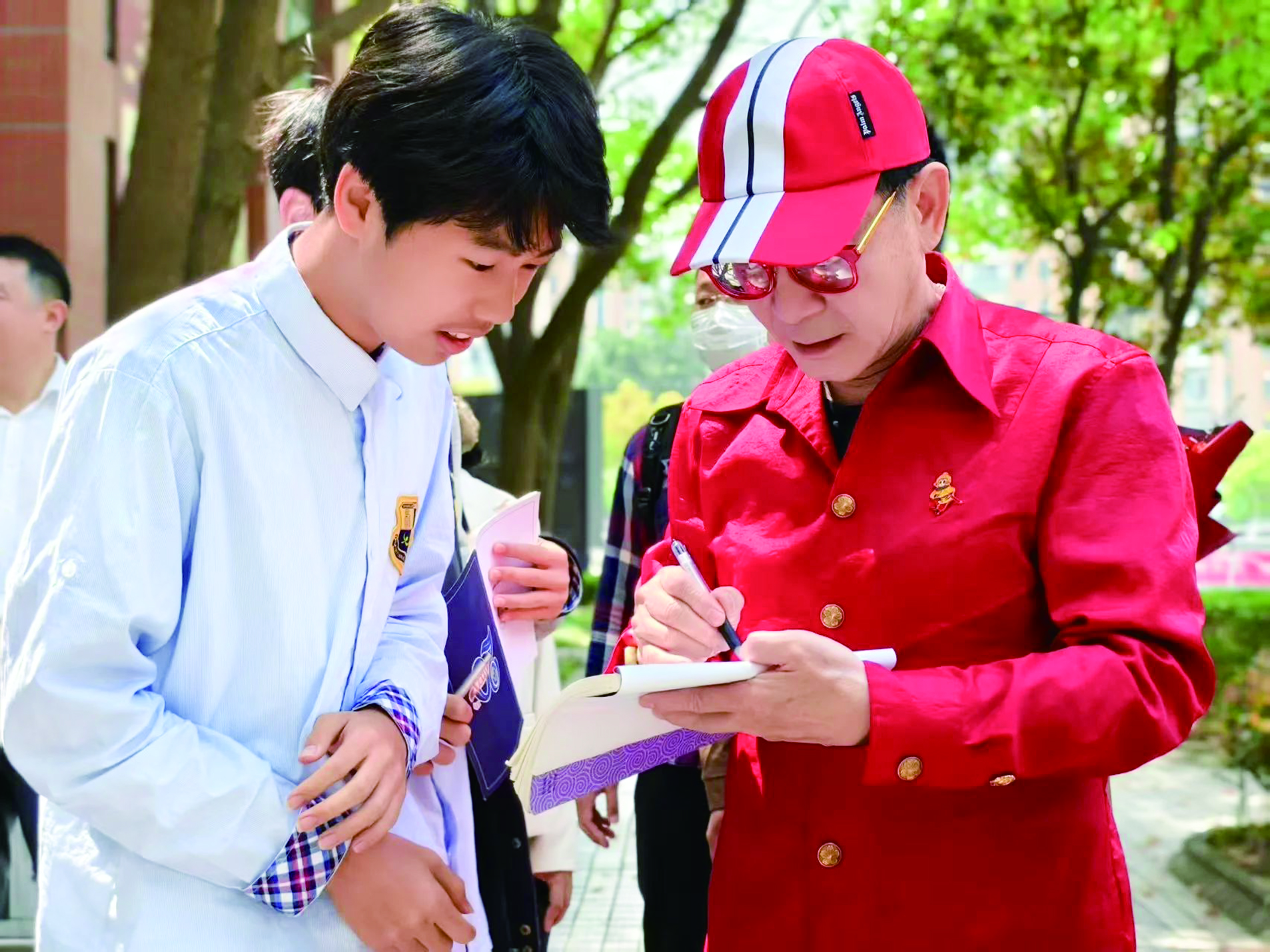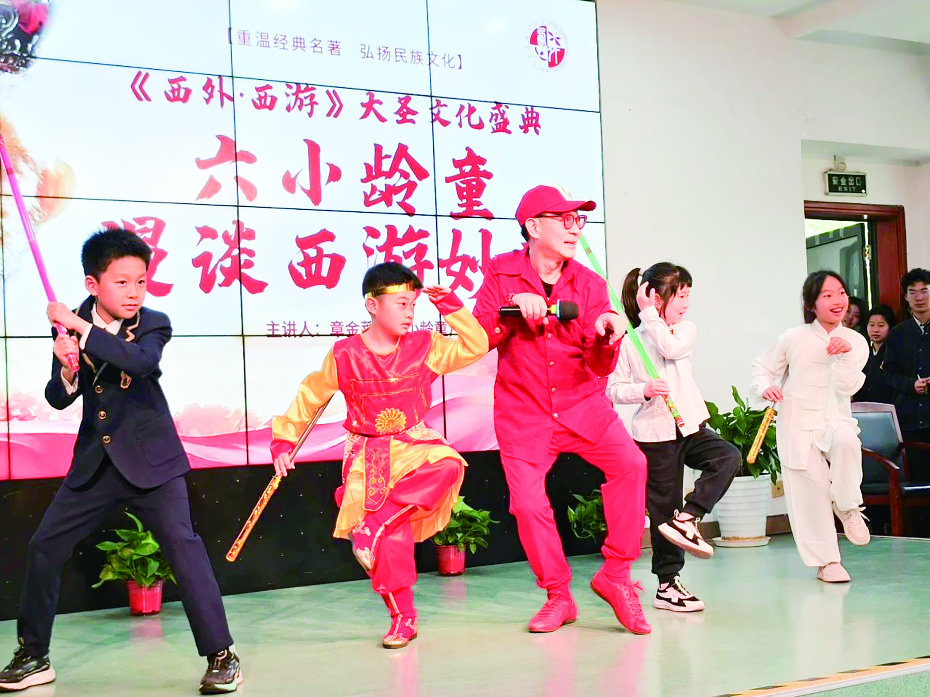“孙悟空的‘火眼金睛’是如何炼成的?”“现代科技如何助力传统文化传播?”“猴戏不姓章,属于中国,属于世界。”“真正的英雄不是无所不能,而是坚守初心,永不言败。”……互动问答环节,六小龄童除了耐心解答孩子们的问题,还鼓励大家多读书、悟经典,从传统文化中汲取勇敢、正义、执着的力量,激励青少年以西游精神为帆,勇担传承使命的重担,做“有根”的中国人。