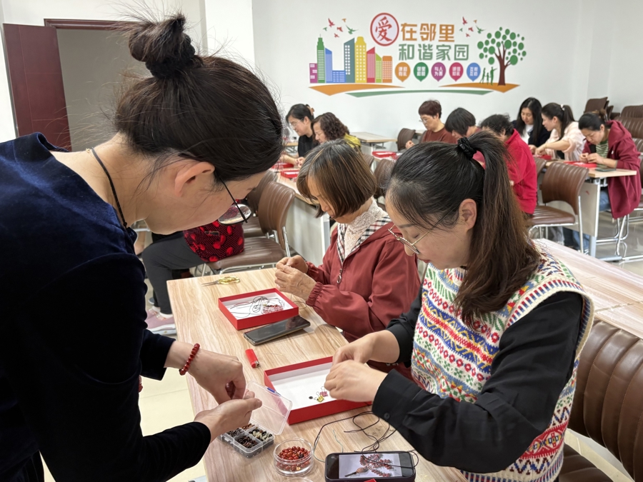 “以前觉得手工制作特别难,没想到在老师指导下,我也能做出这么漂亮的耳饰!”4月15日,在金山区金山卫镇明卫居民区综合文化活动室,季红梅阿姨举着自己刚完成的手工作品,满脸自豪。当天,和她一样早早来“家门口课堂”报到的居民不在少数,大家一边串珠创作,一边交流心得,现场笑声不断。
