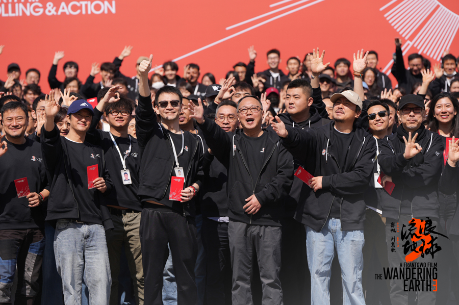 为电影《流浪地球》系列剧本保驾护航的剧本指导王红卫谈及开机前夜,同样感慨万千:“直到昨天深夜,电影《流浪地球3》剧本进度条到了80%,还没有最终完成。面对创作《流浪地球》系列这样难得的电影,大家有些舍不得停笔、舍不得结束,到第三集主创们将努力以最不留遗憾的方式完成‘终章’。”
