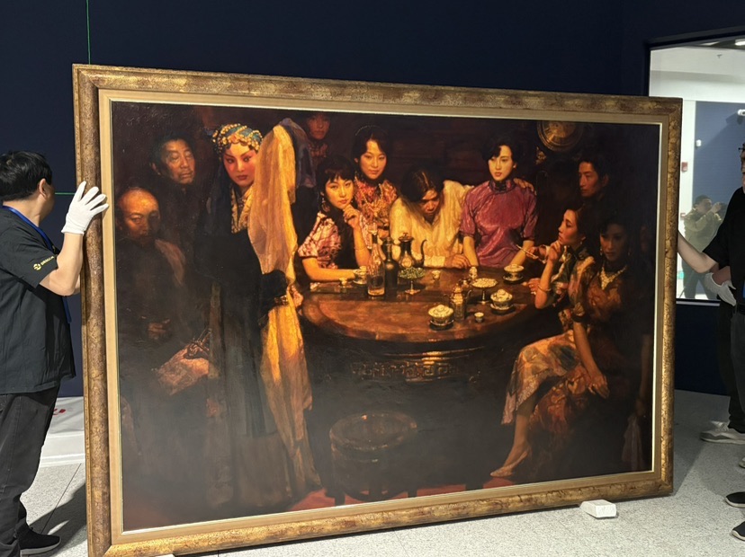 这些天,一批备受瞩目的重点展品陆续抵达美术馆。4月15日,陈逸飞“海上旧梦”系列的巅峰之作——《玉堂春暖》在浦东美术馆开箱布展。这幅创作于1993年的作品,是陈逸飞最为知名的代表作之一。它以民国时期的老上海为背景,在封闭空间中精心构筑出一幅华美的群像,生动展现了那个时代的风华绝代,堪称东方美学与现代绘画技法的完美融合。