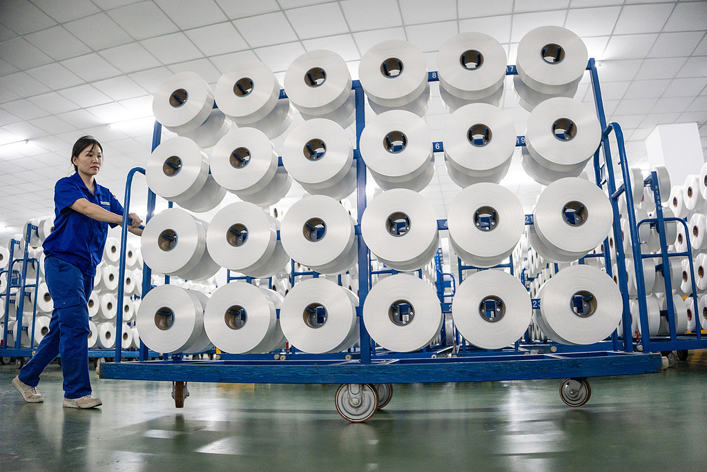 2025年4月16日,江苏省南通市通州区,工人在江苏恒科新材料有限公司生产车间忙碌。视觉中国 图