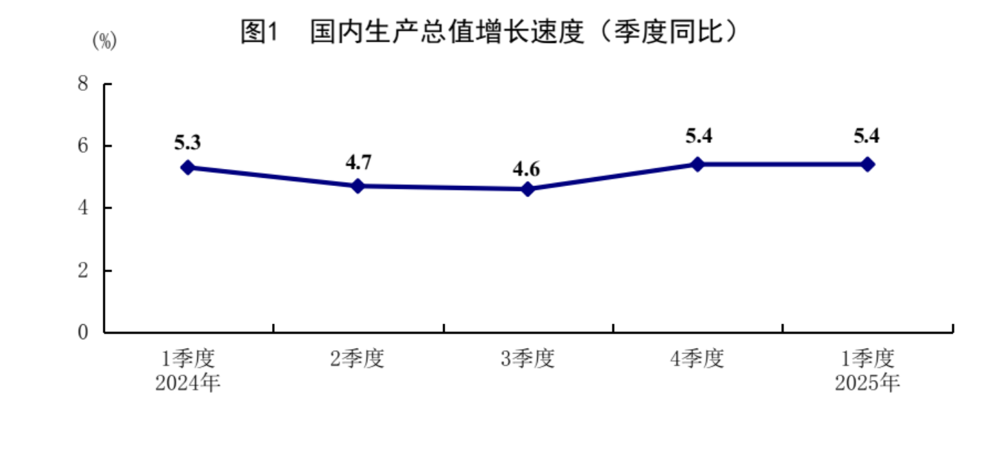 国家统计局副局长盛来运在4月16日的新闻发布会上表示,一季度GDP同比增长5.4%,增速高于去年全国5%的增速,也高于去年一季度5.3%的增速,在全球主要经济体中名列前茅,延续了去年以来持续稳中向好、稳中回升的态势。