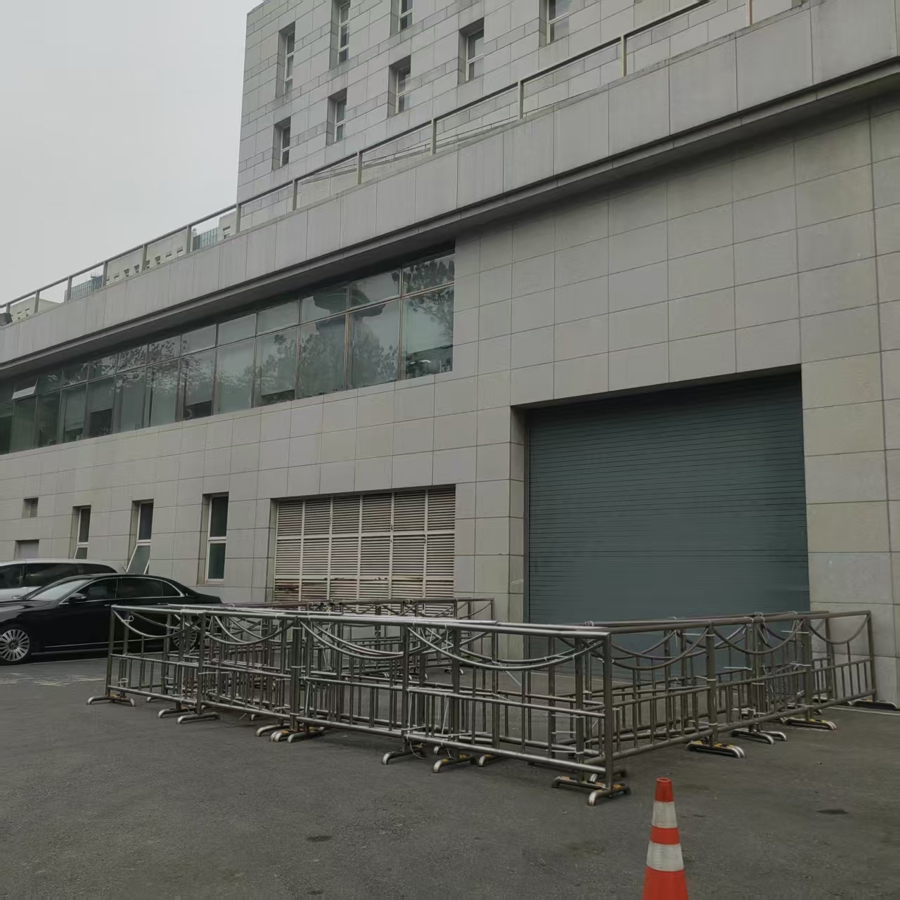 为疏导人流,剧院北面道具装卸口被临时改为SD口。这里常年用于进出大型布景,金属卷帘门取代其他入口的玻璃门,门的面积也大了两倍有余。