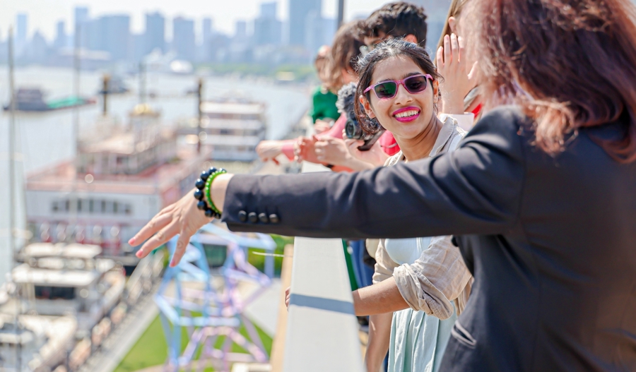 这些外国Z世代青年们正在俯瞰滨江景色。(主办方供图)