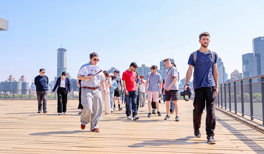 这些外国Z世代青年们在上海滨江漫步、合影。(主办方供图)