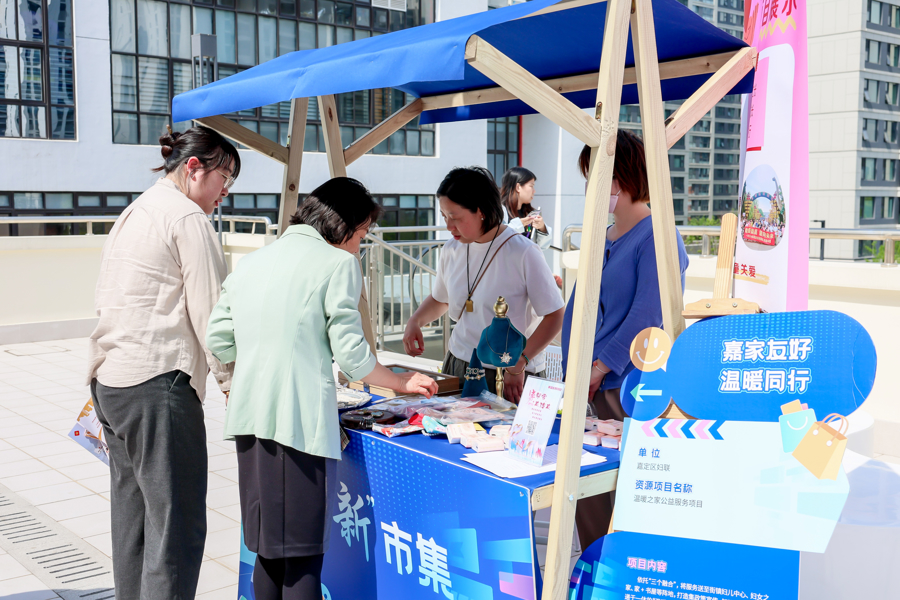 活动外场的“融新市集”,一方面汇聚政府职能部门、驻区单位、街区商户、社会组织、能人达人等特色资源,一方面遴选党群服务中心、我嘉·邻里中心的特色阵地、共享资源、党群品牌等,开展资源洽谈,加强资源、空间跨区域、跨层级的供需匹配,进一步形成“党建引领+多元参与”的融治格局。