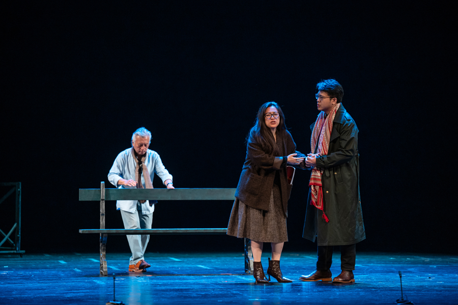 当两位骑着电动车的外卖小哥出现在上音歌剧院的舞台上,拉近了普契尼歌剧《艺术家的生涯》与我们今天生活的距离。100多年前那场巴黎的大雪,仿佛下到了今天的上海。