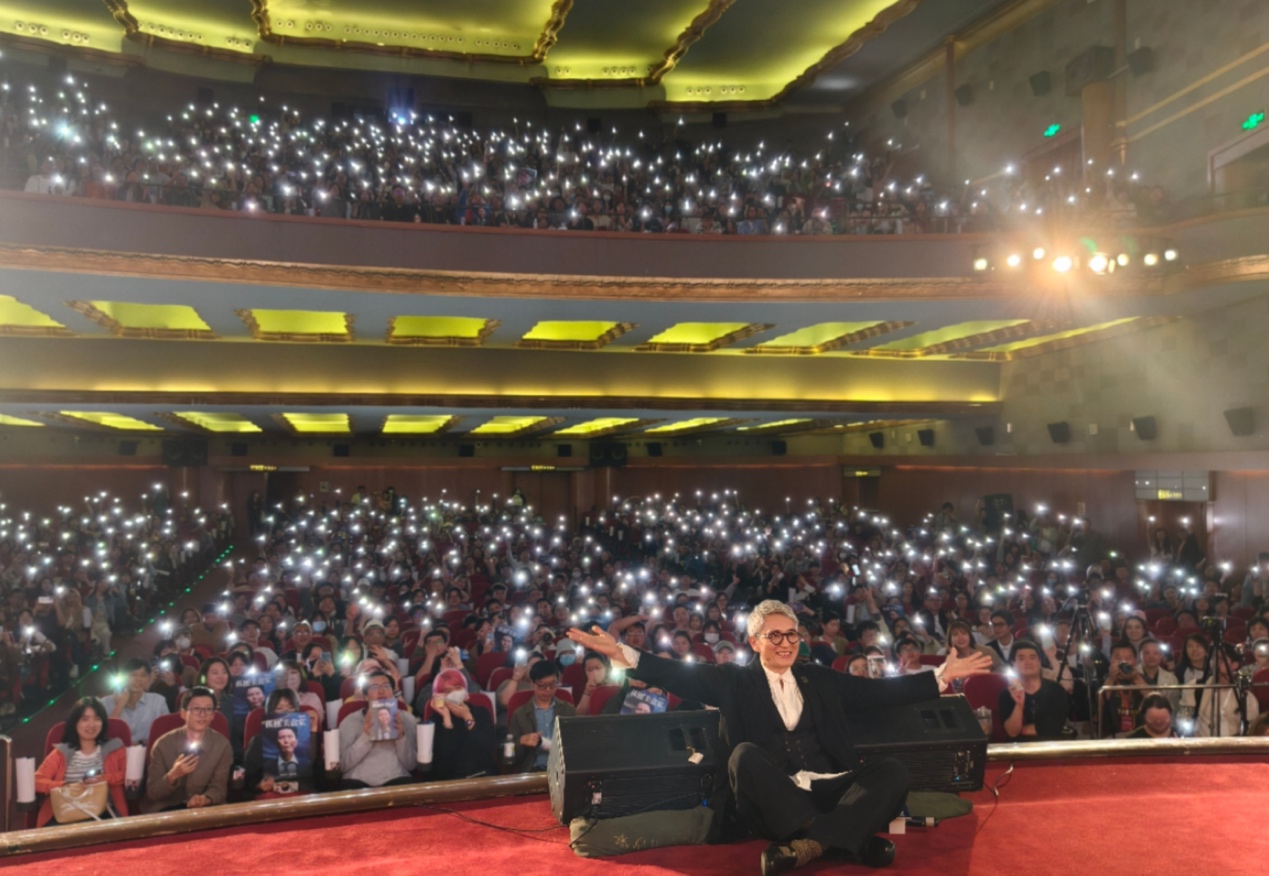 与角色人设高度契合的互动方式引发全场热烈欢笑,而面对每一个提问的观众,他在认真回答完问题后,都会利用翻译转述的时间,下台去到观众席与观众握手,现场气氛十分有爱。
