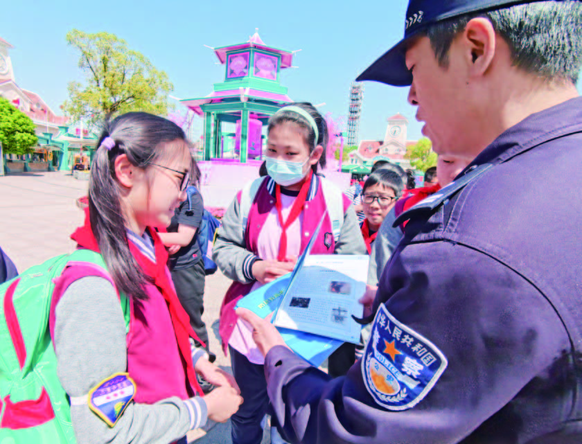 当天10时,在上海欢乐谷景区广场上,松江公安分局会同欢乐谷进行了一场由特警3人最小作战单元开展的突发事件应急处置。这场真实感十足的实景演练,以其快速的反应、精湛的技能,妥善处置了一起突发事件。“如果遇到突发事件,我们第一反应应该怎么做,怎么样处理是最好的,又该怎样疏散游客,从而给大家带来一个安全的保障。这样的演练给了我们新的思考。”欢乐谷公园管理部工作人员桂绮雯说。现场,佘山国家旅游度假区治安派出所民警与松江区人民检察院的检察官们为市民进行法律政策宣传。