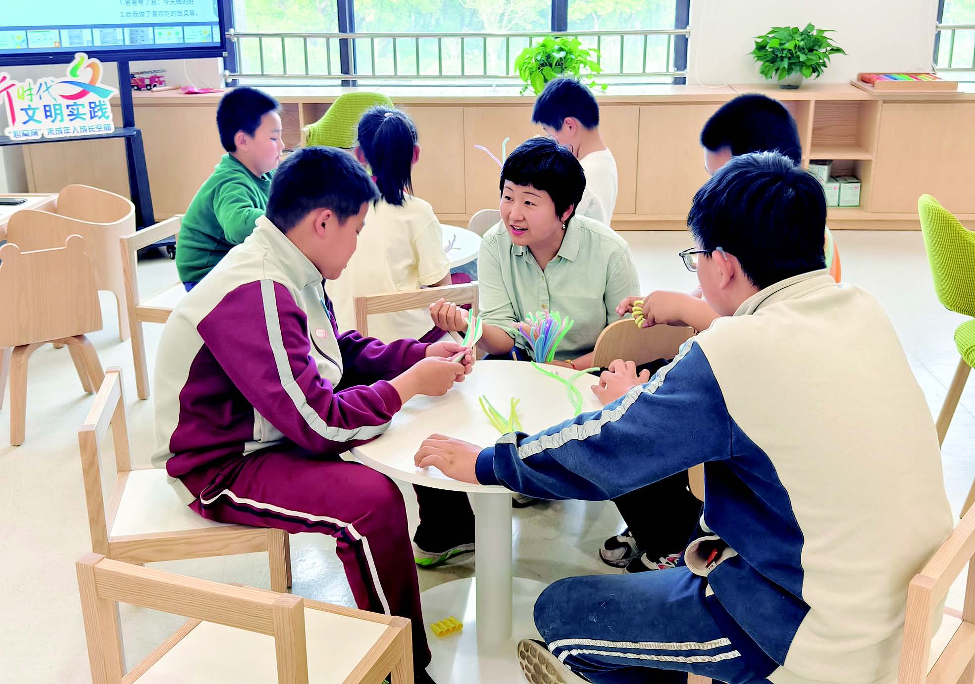 “下课了来‘心窝窝’和大家在一起认识自己,每次都感觉特别开心!”谈及每周和同龄人课后的特别“约会”,五年级小学生宋瑞乐呵呵地告诉记者。和他一样,每逢周五下课,二十多名在九亭镇读书的中小学生都迫不及待地拉着家长赶到“心窝窝”未成年人成长空间,参与一场有关心理健康的文明实践活动,在疗愈身心中打开心扉、相伴成长(见右图)。