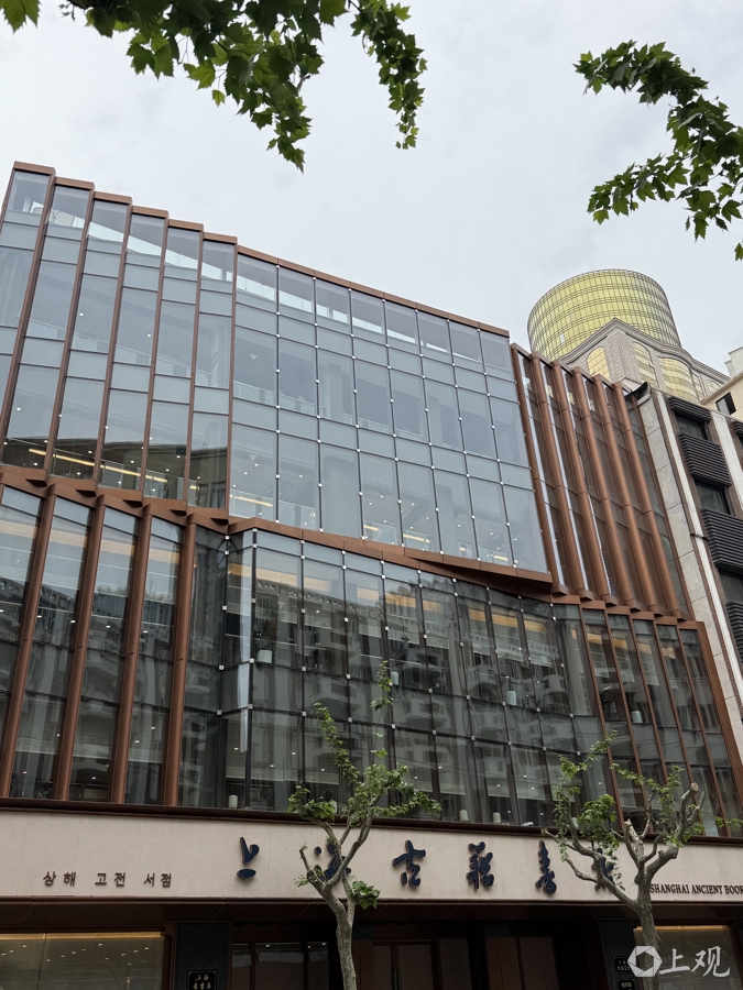 焕新的上海古籍书店外立面以“古籍新生·光影叠韵”为设计理念,折面造型形成“翻动的书页”。施晨露摄