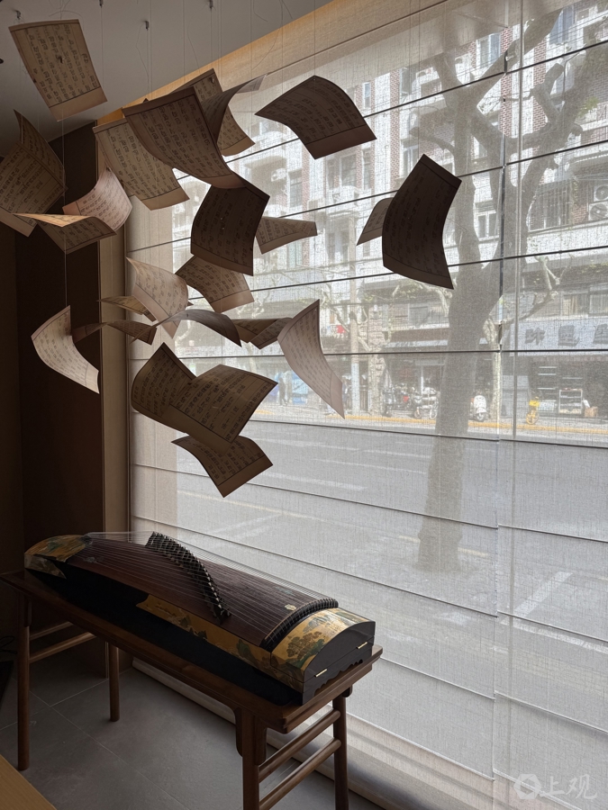 书店有专属香——扬州省级非遗制香大师运用古方古法结合书香、纸香、油墨香手工调配而成的“博雅”人文香;有专属音乐——上图公司所藏古琴谱中的一曲《列子御风》改编后成为书店的背景音乐,与上海民族乐器一厂有限公司合作的“天空音乐汇”品牌活动将在屋顶花园不定期举办。