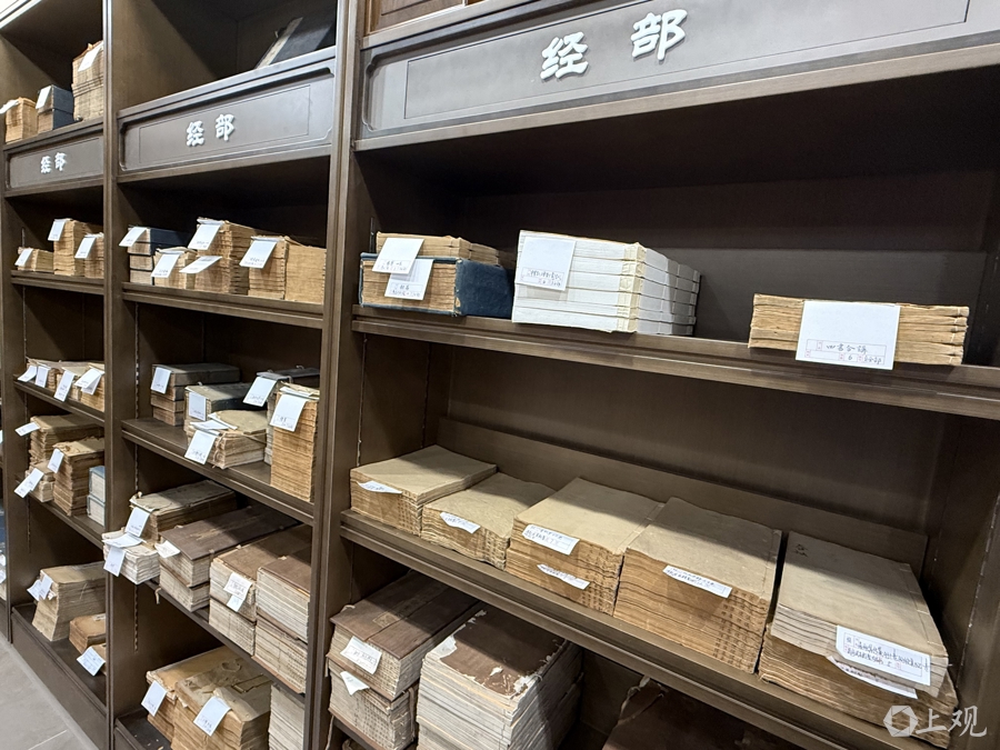 三楼“博古斋”集中展示旧版线装书,这也是上海古籍书店古籍修复与保护的成果。施晨露摄