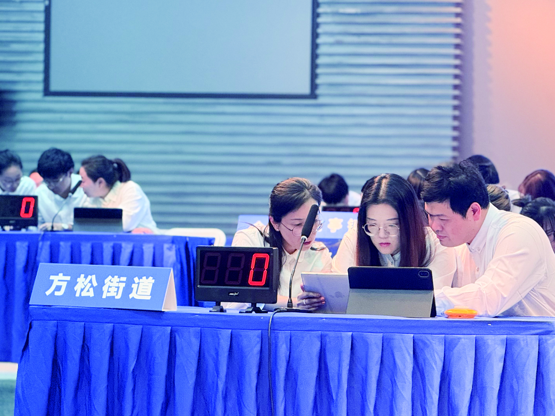 在“技能挑战赛”上,晋级队伍通过情景模拟题和方案设计题,聚焦“社区绿化整治”“小区停车难”“特殊困难老年人探访关爱”等热点问题,进行了精彩的角色演绎,提出了切实有效的解决方案。