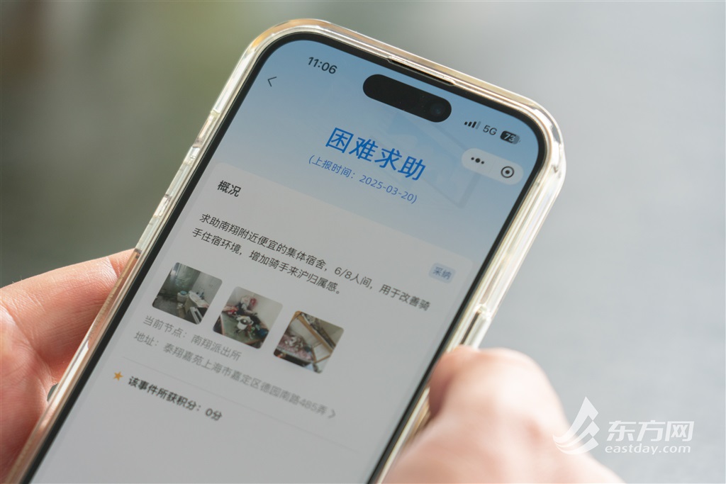 “e嘉人”微信小程序是嘉定公安牵头开发的数字化平台,群众可以通过文字、语音、图片、视频等方式反映需求、线索,由后台值守人员按照区域和类别,流转相应网格或部门承接处置。2024年,嘉定公安分局推出“微网格”治理模式,整合各方力量,借助“e嘉人”小程序等数字化平台,实现社区问题隐患的快速反馈与处置。 嘉定公安分局治安支队基层指导科科长朱劲超告诉记者,接到此求助,南翔派出所社区民警迅速行动,前往外卖平台南翔站点,与求助者面对面沟通,详细了解骑手们的住宿现状,并安抚骑手们耐心等待,承诺全力寻找合适住所。 快递外卖小哥租住集体宿舍,一方面要考虑车辆充电问题,另一方面也要考虑不能影响到附近居民。