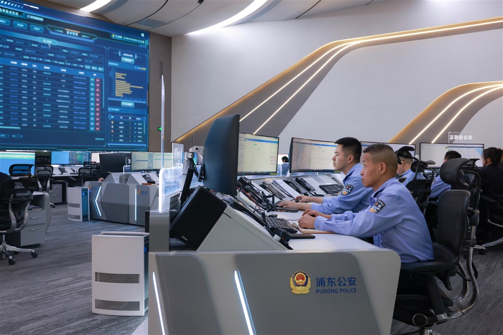 图为浦东公安分局指挥中心民警研判警情处置(上海警方供图,同下)