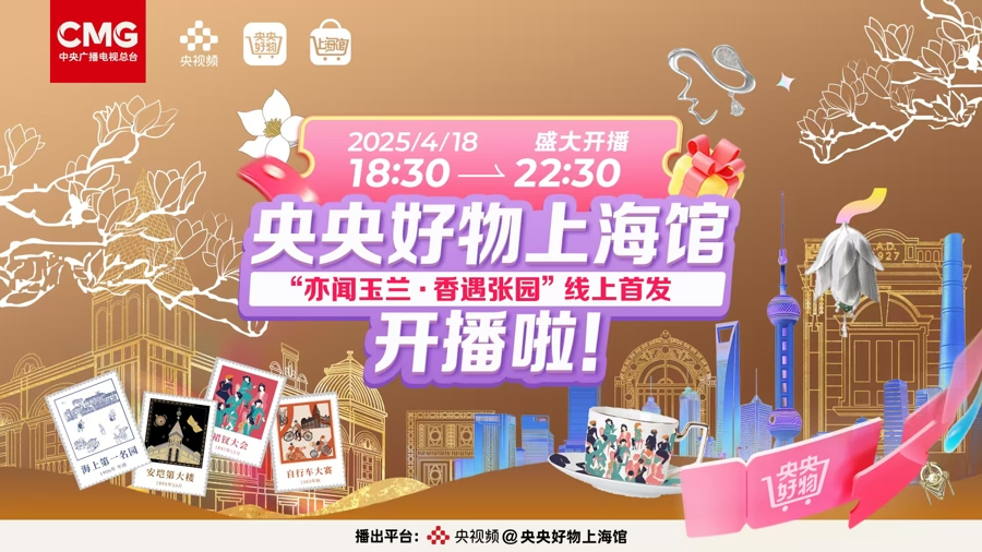 今天18时30分,张园安垲第文创将以“亦闻玉兰·香遇张园”为主题首次线上亮相,与央视频共同呈现央央好物上海馆首播。4小时的直播将带领观众穿越时空探访张园的前世今生,揭秘安垲第文创背后的传奇故事,还有众多爆款好物,限时限量三折起售。