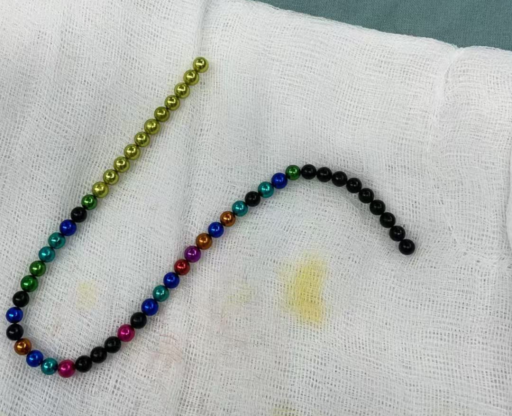 院方透露,该名少年患者因青春期好奇心驱使,自行将52颗直径约5毫米的磁力珠经尿道塞入膀胱。4天后,患者出现排尿困难、下腹疼痛等症状,在家人的陪同下就诊于该院泌尿外科。CT影像显示,这些珠子全部沉淀在膀胱最下端,不仅造成尿路梗阻,更可能因持续压迫导致膀胱黏膜损伤。情况紧急,必须尽快手术取出。