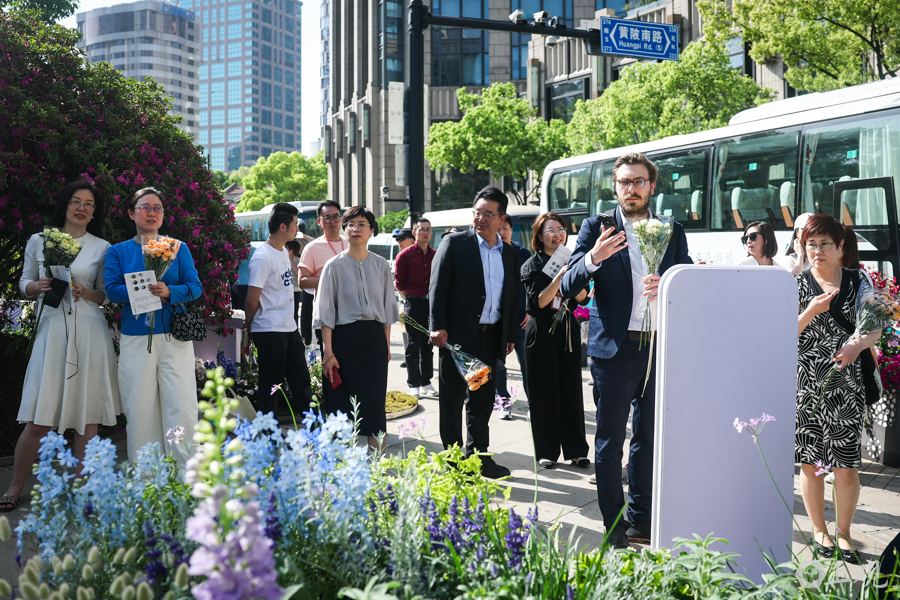 当天活动的主题为 “赏繁花・绘蓝图” ,在观赏花展之余,街道负责人与营商团队也向外籍高管介绍了新天地商圈以及黄浦区的发展前景,持续释放开放的信号。