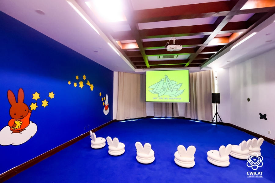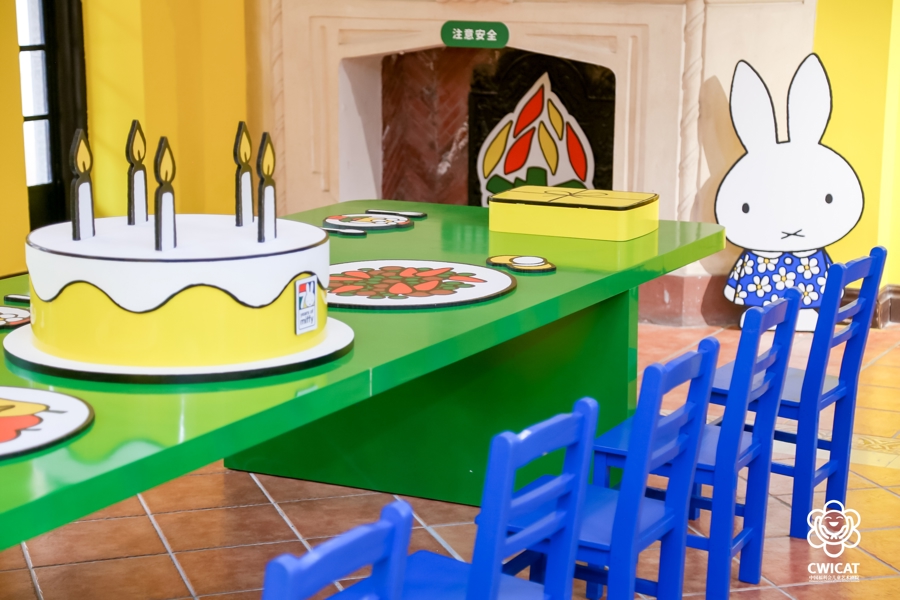 “米菲请你来做客”戏剧主题展览采用戏剧 + 主题空间模式,整个剧院被明亮的颜色装扮成可爱的party现场。广场上巨型米菲生日蛋糕像一定要去打卡!一楼大厅的长条桌上摆满了餐盘和蛋糕,等着小朋友们就座。旁边是“米菲的影院”,看看动画片听听音乐一起走进米菲的日常;另一侧的“米菲书房”则是集创意游戏和趣味互动于一体,是孩子发挥想象力的小天地。屋外的大草坪是米菲的花园,孩子们可以和米菲一起在大大的荷兰风车下快乐奔跑。