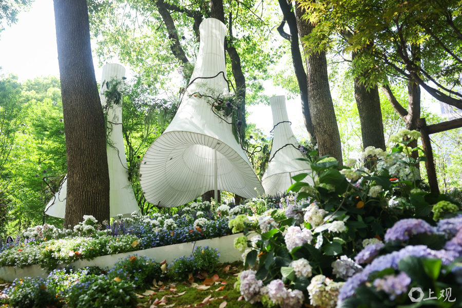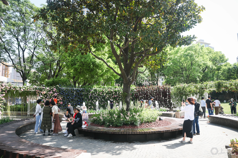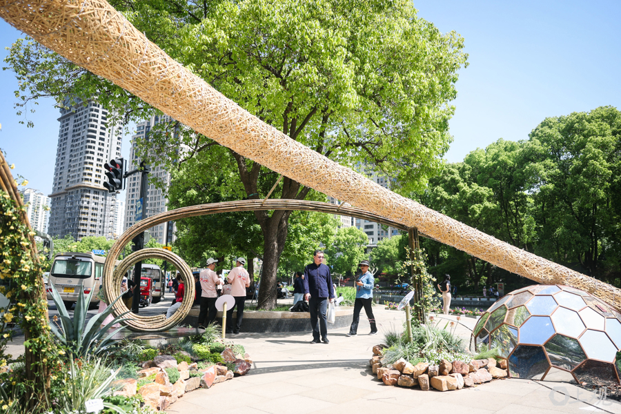 黄浦区新天地作为“城市主会场”,邀请了5个国际设计团队参展,围绕“花开新天地”主题,通过对自然回归城市、生态与生活相融、城市生物多样性保护等话题,在有限的空间中营造出深邃隽永的景观意象。