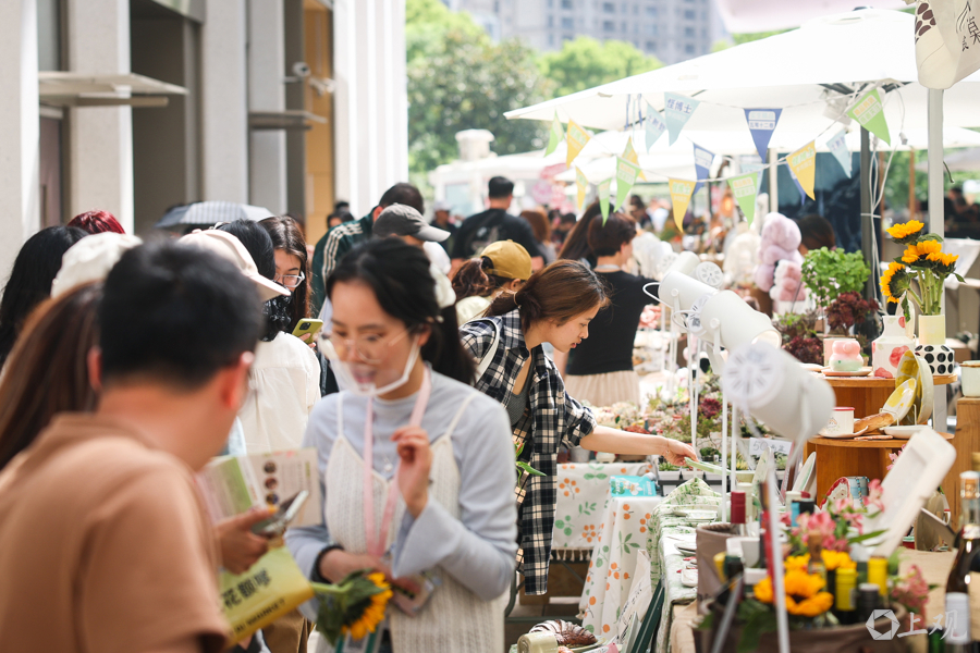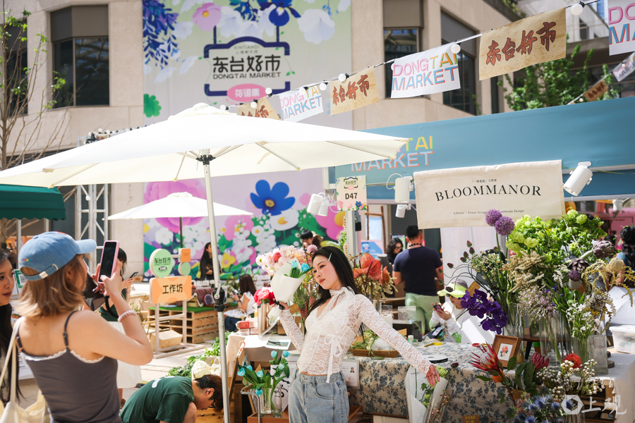 与此同时,“东台好市·花语集”在太平洋新天地亮相,吸引了60多家品牌共创,汇集70余家市集摊位,用一场盛大的鲜花市集,让百年老街焕然新生。