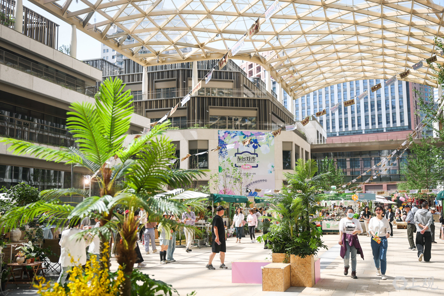 “东台好市·花语集”在天幕穹顶下,打造了超过2000平方米的户外花园生活空间,呈现超过100种时令花卉和逾80万株鲜花绿植,将城市丛林转变为充满生机的“都市绿岛”。