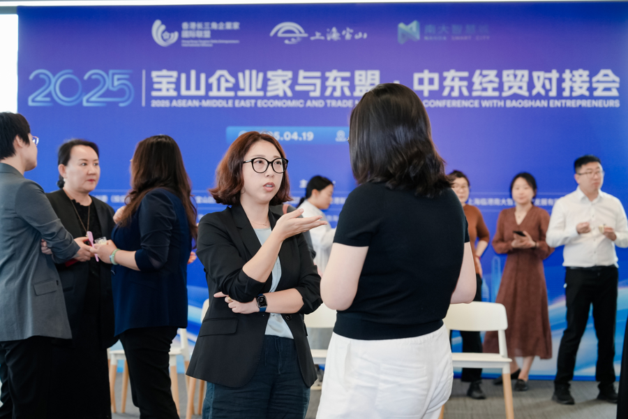 说话的是海隆石油负责人张小攀。4月19日,记者与他在宝山南大智慧城双子塔楼相遇。尽管不是工作日,楼里的人却不少,60多家企业的代表从各处赶来。他们参加的,是2025宝山企业家与东盟・中东地区经贸对接活动。
