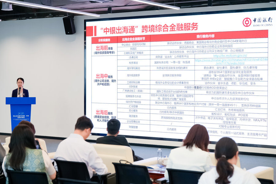 活动还安排了法律与金融两方面的干货分享。上海大学法学院教授芦雪峰围绕企业出海法律风险防范,从合同合规、知识产权保护、争议解决等维度给出实操建议。中国银行深度解析跨境金融服务,对企业投融资、汇率避险、跨境结算专属产品等内容进行分享。