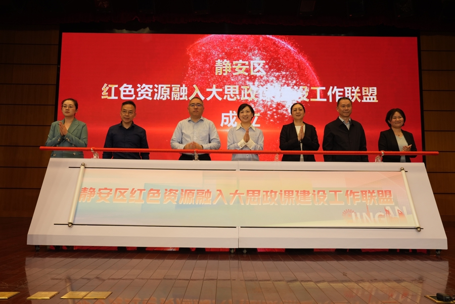 自去年以来,静安区开展先行先试。去年11月,静安区委宣传部联动多部门共同发布了《静安区关于开展红色资源与大思政课深度融合试点工作实施方案》,从顶层设计发力,推动构建起常态化红色文化育人体系。推进会上,区委宣传部、区委党研室、区教育局、区文化旅游局、团区委、宝山路街道共同启动成立“静安区红色资源融入大思政课建设工作联盟”。下阶段,工作联盟将负责总体统筹、指导、协调,加强顶层设计、整体推进,推动部门协同、市区联动、馆校合作,推动红色文化与大思政课深度融合,着力构建政府、学校、红色场馆、社会等各方面、各领域共同参与的协同育人“教联体”,把红色文化教育全方位融入教育各环节。