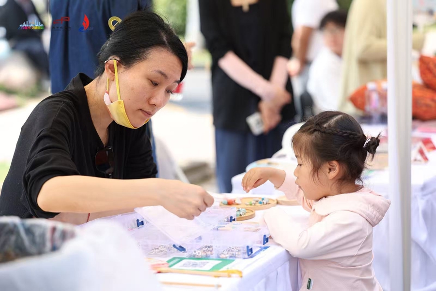 文化市集不仅弥漫着书香,更是一场活色生香的非遗文化盛宴。从精美的漆扇画到别致的手串,从栩栩如生的糖画到精致的香包……还有航头非遗美食——下沙烧卖和粽子,每个摊位都像是一个流动的文化基因库,让古老的智慧在指尖焕发新生,为市井生活增添传承的温度。