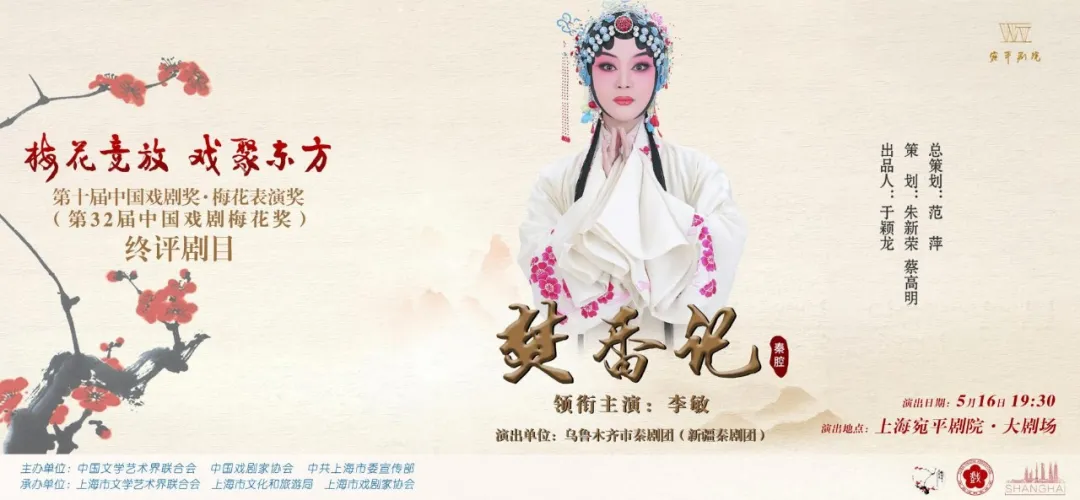 2025年5月8日至21日,由中国文联、中国剧协、中共上海市委宣传部联合主办的第十届中国戏剧奖·梅花表演奖(第32届中国戏剧梅花奖)终评活动将在上海隆重举办。终评以剧目现场展演的形式进行,届时,涵盖11个戏曲剧种和话剧、舞剧等戏剧艺术门类的17位演员将为广大观众奉献17场精彩纷呈的演出,终评结果将于5月21日晚第十届中国戏剧奖颁奖晚会上,与第26届曹禺戏剧文学奖一同揭晓。