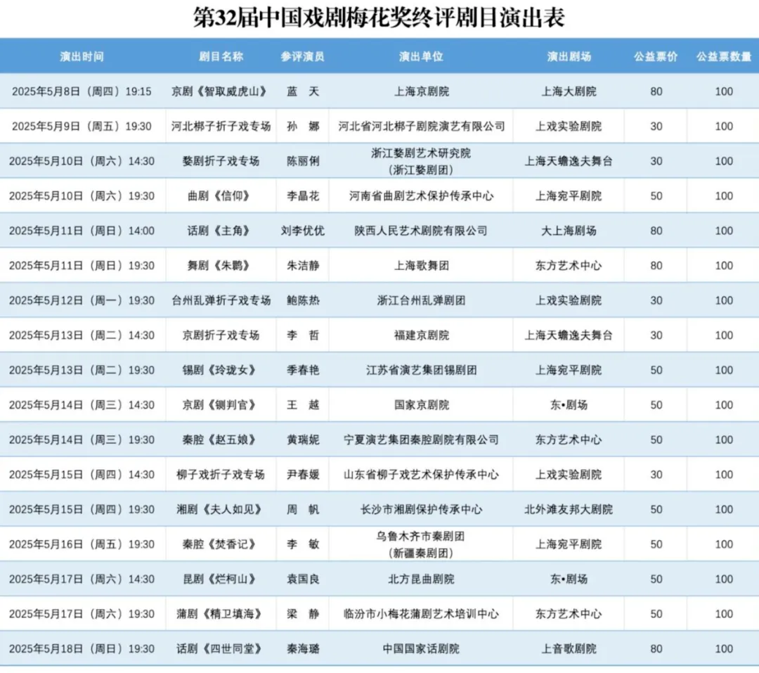 第十届中国戏剧奖·梅花表演奖(第32届中国戏剧梅花奖)终评活动启动在即,17场演出公益票即将发售