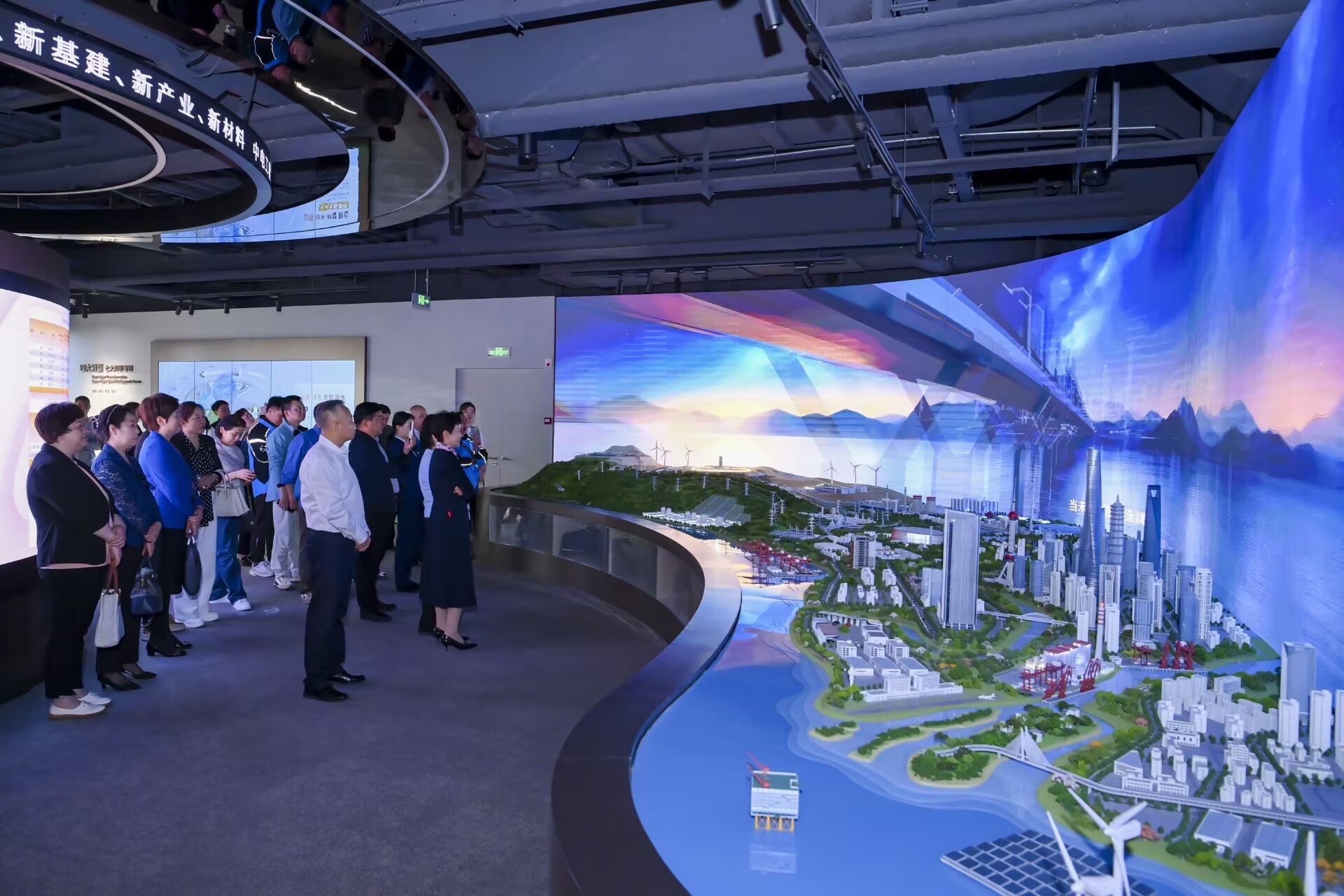 “华东电力设计院品牌体验馆的主题是‘源于创新,启明未来’”在华东电力设计院的品牌体验馆中,劳模们仿佛置身于电力科技的未来世界。从中国电力的起源,到如今的新能源、智能电网,每一个展区都充满了科技的魅力。“这里汇聚了电力行业的智慧与创新。”讲解员的话语中透着自豪。体验馆内,高科技的展示手段让人眼前一亮,从智能电网到新能源技术,从虚拟现实到互动体验,每一个角落都散发着科技的魅力。