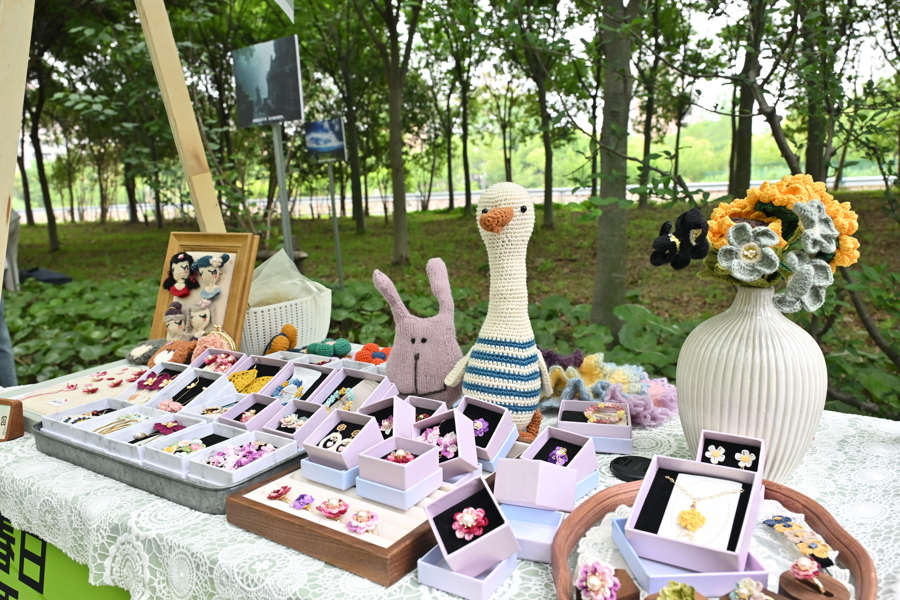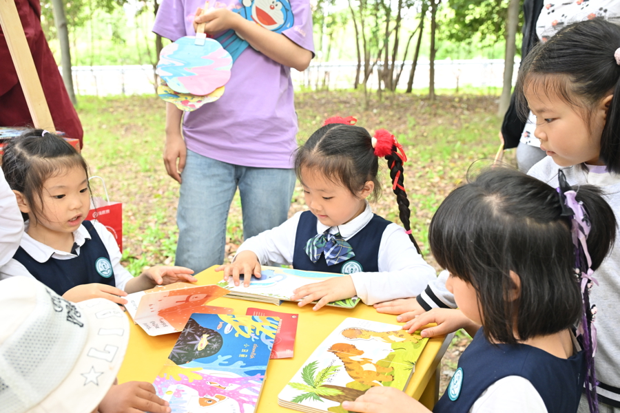 如果说,聆听文化名人分享文学作品是一种“静”,那么,场外林中正在上演的“樱桃春日”书香市集便是一种“雅”。