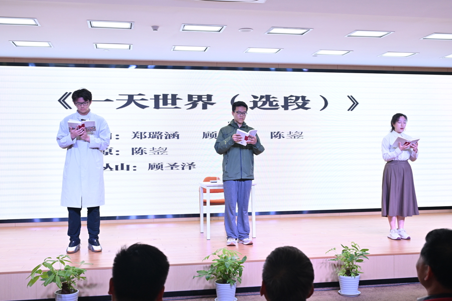 坐拥两所全国知名高校,15所基础教育学校和1所社区学校,吴泾镇得天独厚的教育教学资源,涵养了“浦江第一湾”独特的文化气质。以文化展示交流推动校地融合发展,华东师范大学附属闵行永德学校的小学生和华东师范大学中文系的大学生,结合各自的阅读经历进行创意创作,分别带来了童谣《山楂果儿红》和微情景剧《一天世界》选段,演绎了文学和艺术的互通。